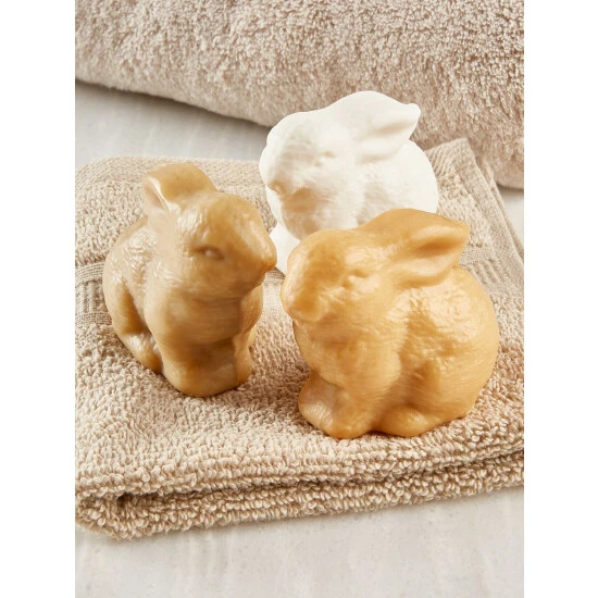 These bunny-shaped soaps are just too cute! They look like miniature white, butterscotch, and chocolate Easter bunniesβbut don’t eat them! Each soap is made with shea butter and cocoa butter and French-milled for smooth, silky lather that lasts and lasts. They have lovely scents too: Snow Bunny (almond), Garden Bunny (butterscotch and honey), and Sweet Chocolate Bunny (dark chocolate and exfoliating cocoa bean shell). Choose any three soaps.
