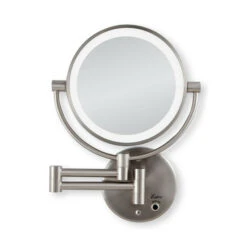 Putting in your contacts, tweezing your eyebrows, and shaving just got easier! This magnifying mirror is designed with two sidesβone with 5X magnification and the other with 1X magnificationβandspins easily to use either side. It attaches to the wall with an extendable arm for hands-free ease, and the cordless design eliminates unsightly cords.