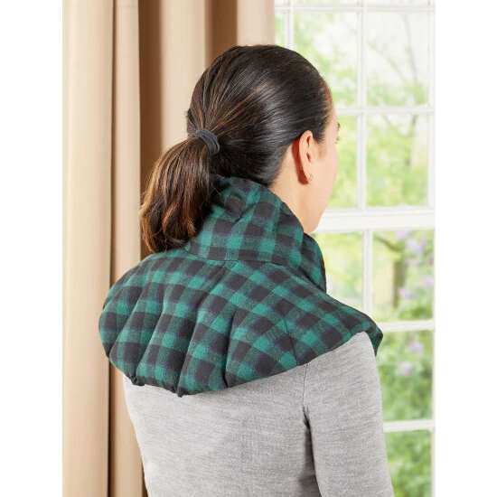 This wrap is specially designed to fit across the shoulders to offer soothing relief from muscle aches and pains. It’s made of soft flannel (in an exclusive black watch print) and is filled with a blend of herbs, including lavender, chamomile, rosemary, spearmint, lemongrass, yarrow, cinnamon, white willow, valerian, yellow dock, hops, and peppermintβplus, wheat kernels and flaxseeds. Place it on your shoulders and neck area for temporary relief from pain as well as improved circulation, reduced stress, and calmed inflammation. Also works for other parts of the body as well.