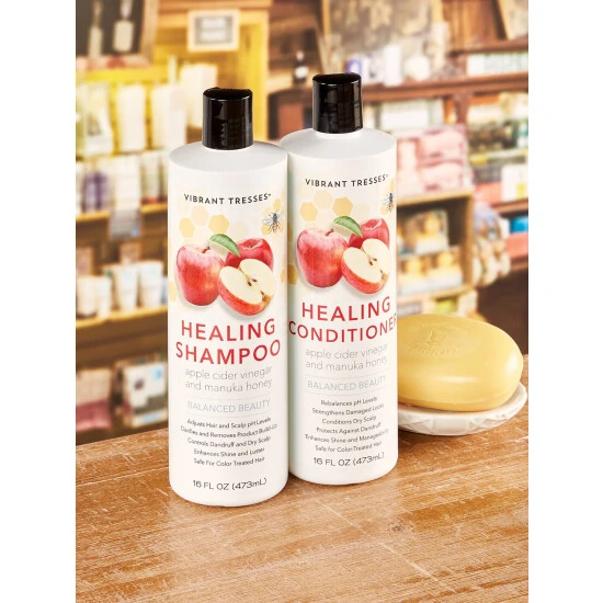 We’ve created this dynamic duo to bring the natural benefits of apple cider vinegar to your hair and scalp. The shampoo helps to detoxify and clarify the scalp, plus it helps to balance pH levels, which helps control dandruff. It also contains alpha-hydroxy acid, which gently exfoliates the scalp, removing dead skin cells, dirt, oils, and product build-up—all without stripping the hair of its natural oils. The conditioner smooths away frizz and split ends and fortifies the cuticle to reduce breakage. Both formulas work together to enhance shine and manageability, and to keep your scalp healthy.